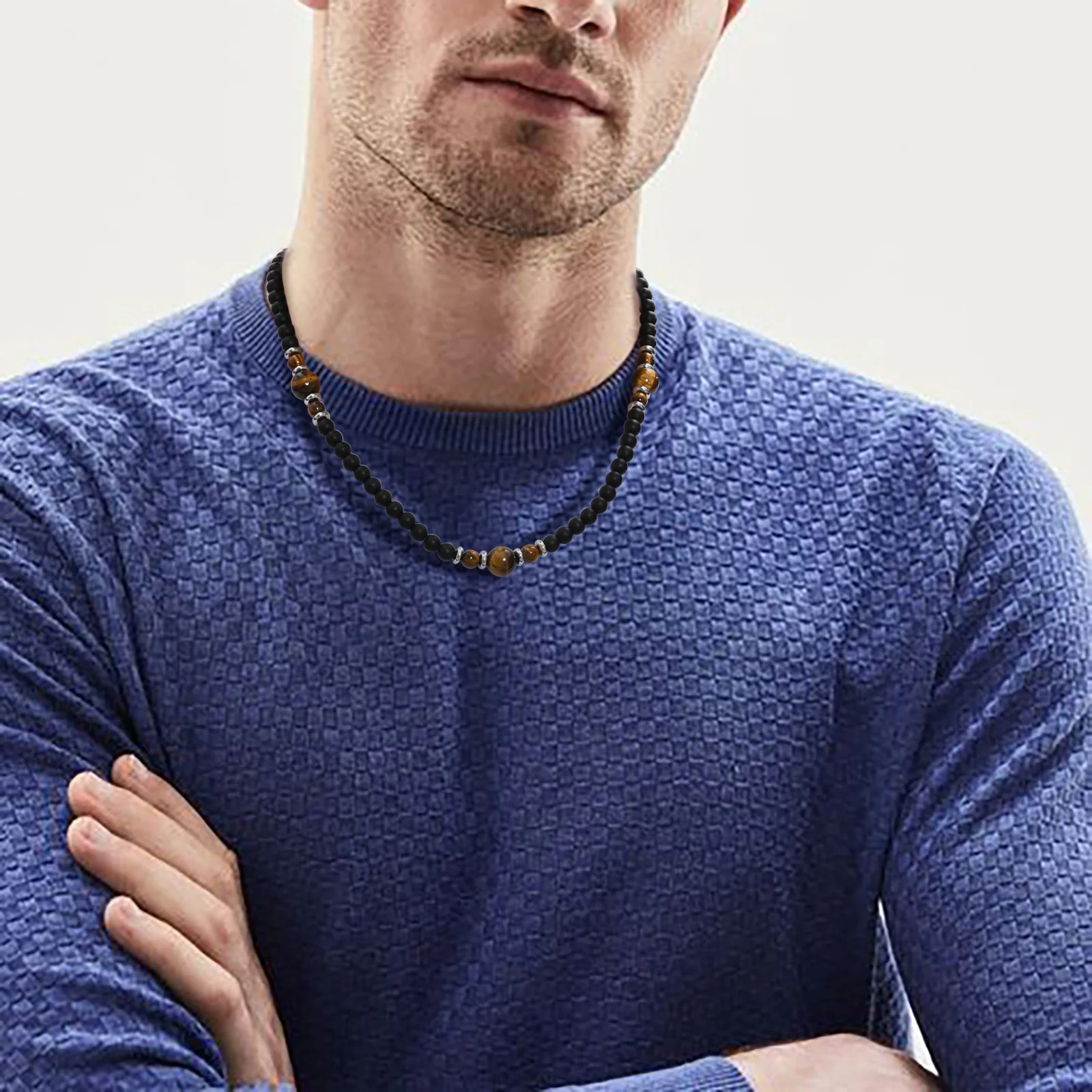 Native American Christmas 🎄 Casual Black Brown Beaded Necklaces for Men Boys,Summer Beach Tiger Eye Stone Beads Collar,Waterproof Swimming Jewelry